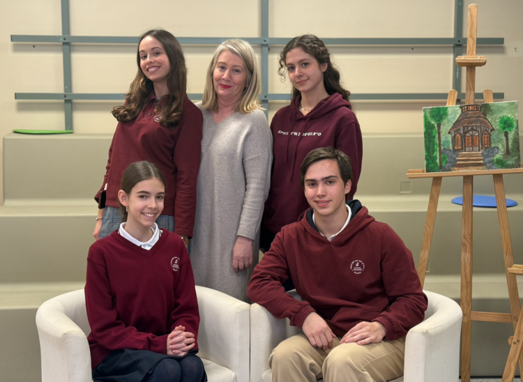 Patricia Soria, Madison Venable, Isabela Ávila y Patric Catrinescu junto a su profesora D.ª Lola Sánchez.